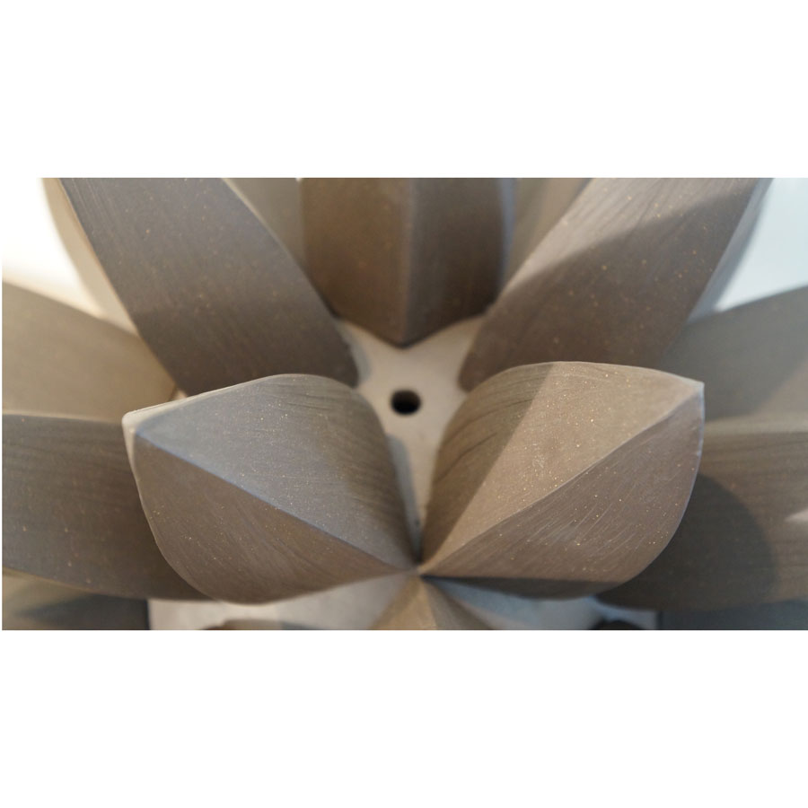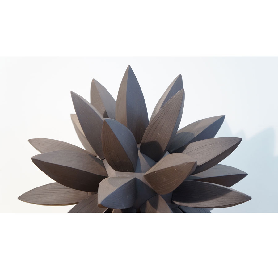 Titia Estes is native of California, currently based in Los Angeles. She creates sculptural ceramic vessels based on the relationship between architecture and nature. Her impetus is to understand the similarities, as well as the contrast, between the structures of the city and the simple shapes in nature. Of course, both are based in geometric shapes. Whether the repetitive pattern of windows on a tall building, or the random stacking of a rock formation, both creations are organized and fit together as vital and vibrant forms. Influenced by both, Titia’s minimal use of glazes is intended to reveal the stony surface of the clay, emphasizing its beauty and feel.