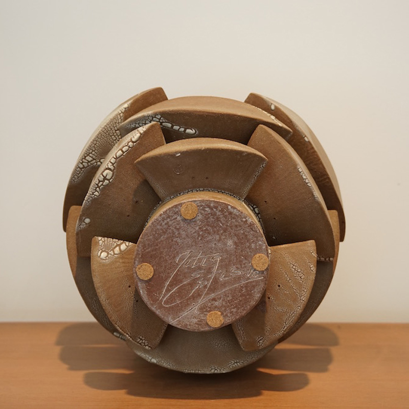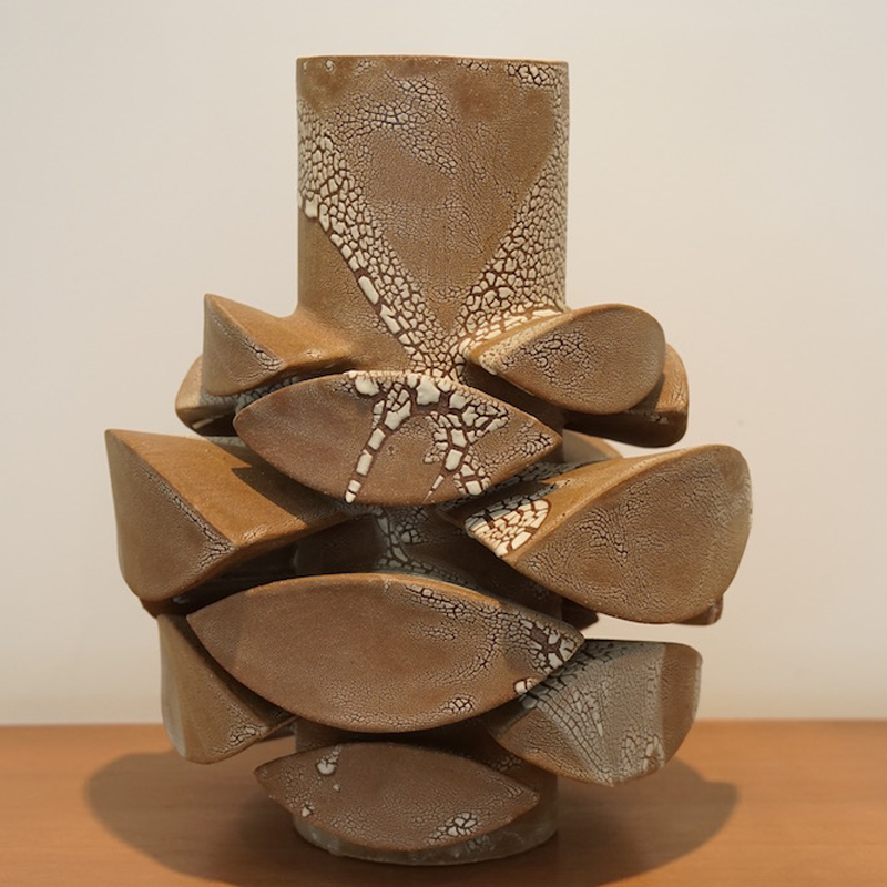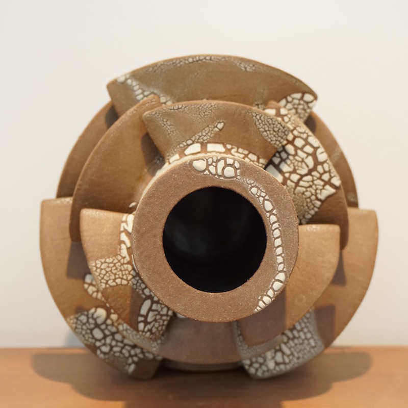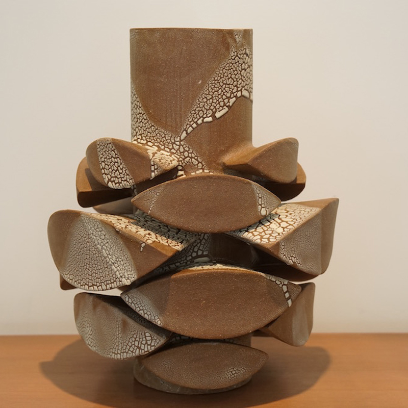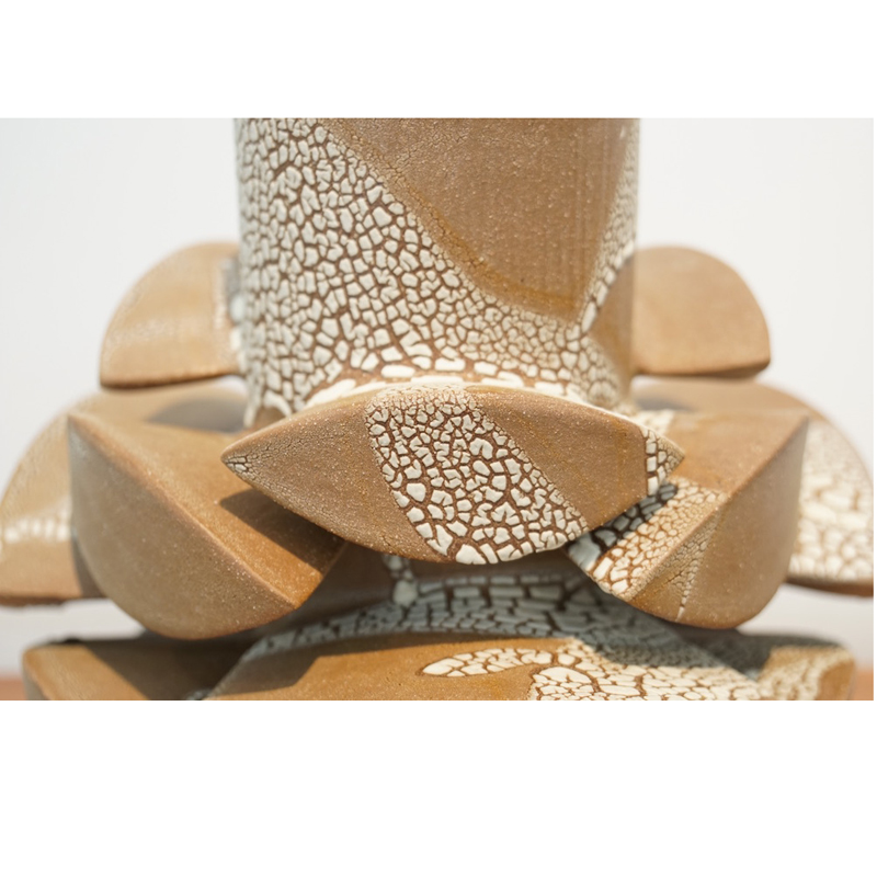 Titia Estes is native of California, currently based in Los Angeles. She creates sculptural ceramic vessels based on the relationship between architecture and nature. Her impetus is to understand the similarities, as well as the contrast, between the structures of the city and the simple shapes in nature. Of course, both are based in geometric shapes. Whether the repetitive pattern of windows on a tall building, or the random stacking of a rock formation, both creations are organized and fit together as vital and vibrant forms. Influenced by both, Titia’s minimal use of glazes is intended to reveal the stony surface of the clay, emphasizing its beauty and feel.