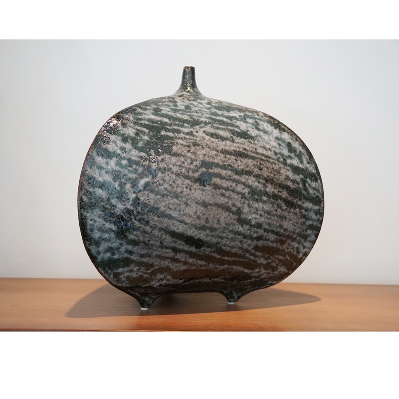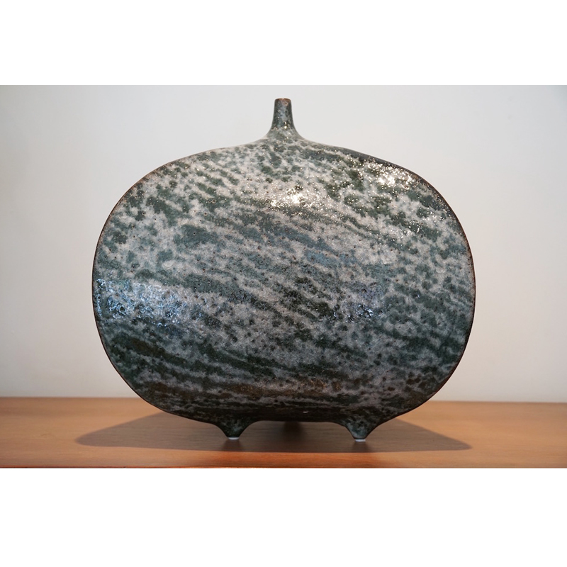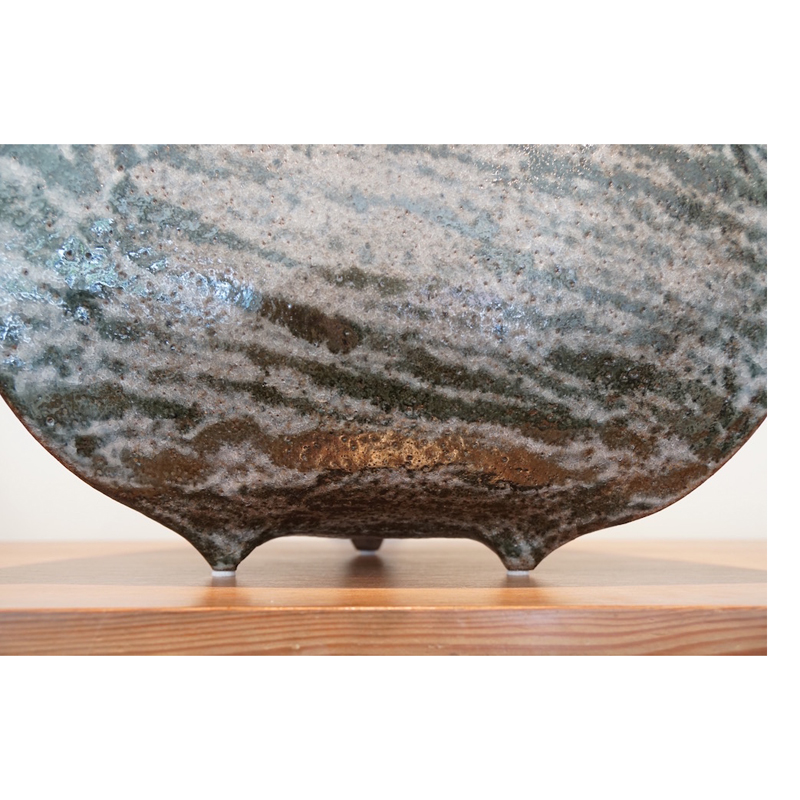 Glaze:White Crackle Glaze with Grey to Green Striations.