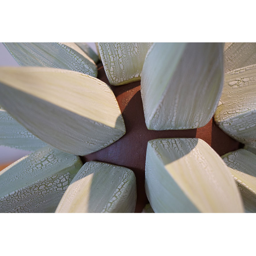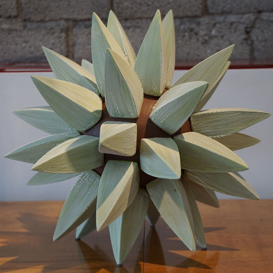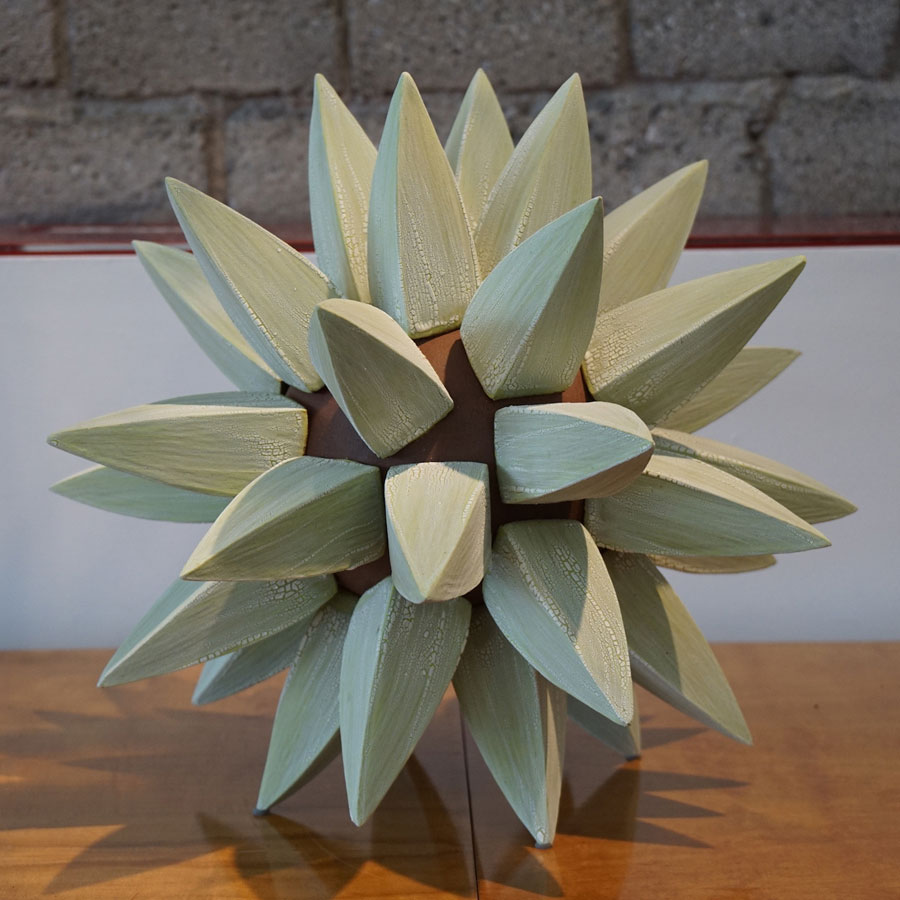 Titia Estes is native of California, currently based in Los Angeles. She creates sculptural ceramic vessels based on the relationship between architecture and nature. Her impetus is to understand the similarities, as well as the contrast, between the structures of the city and the simple shapes in nature. Of course, both are based in geometric shapes. Whether the repetitive pattern of windows on a tall building, or the random stacking of a rock formation, both creations are organized and fit together as vital and vibrant forms. Influenced by both, Titia’s minimal use of glazes is intended to reveal the stony surface of the clay, emphasizing its beauty and feel.
