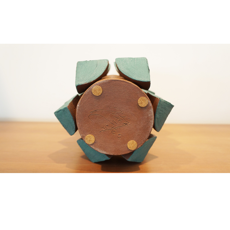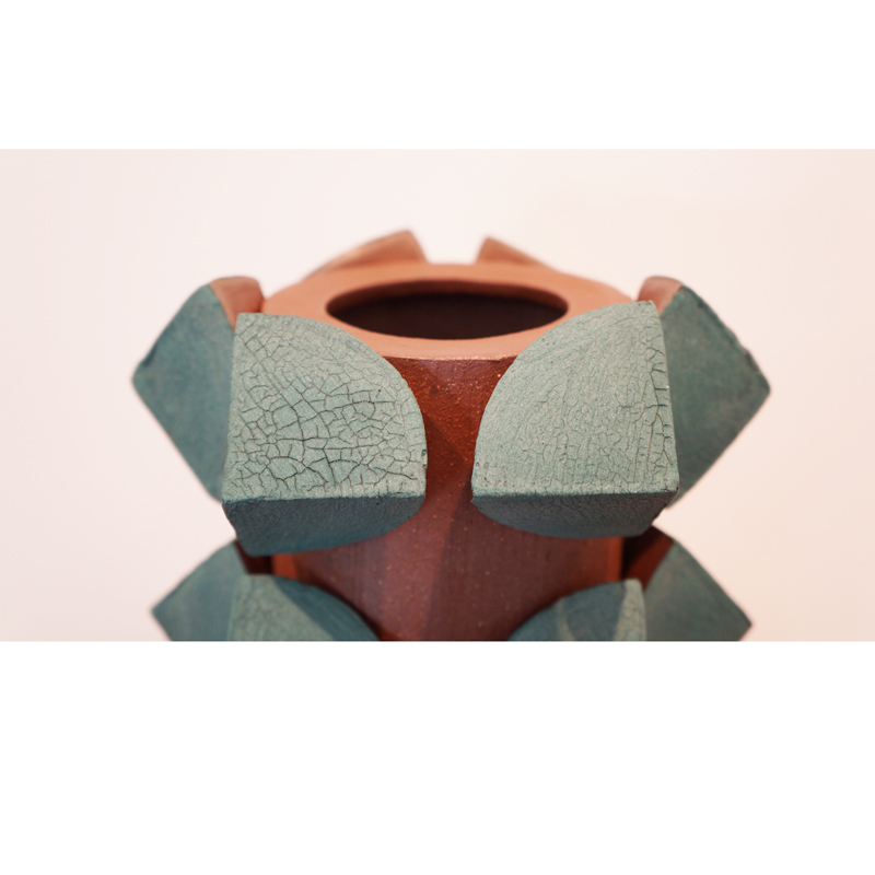 Titia Estes is native of California, currently based in Los Angeles. She creates sculptural ceramic vessels based on the relationship between architecture and nature. Her impetus is to understand the similarities, as well as the contrast, between the structures of the city and the simple shapes in nature. Of course, both are based in geometric shapes. Whether the repetitive pattern of windows on a tall building, or the random stacking of a rock formation, both creations are organized and fit together as vital and vibrant forms. Influenced by both, Titia’s minimal use of glazes is intended to reveal the stony surface of the clay, emphasizing its beauty and feel.