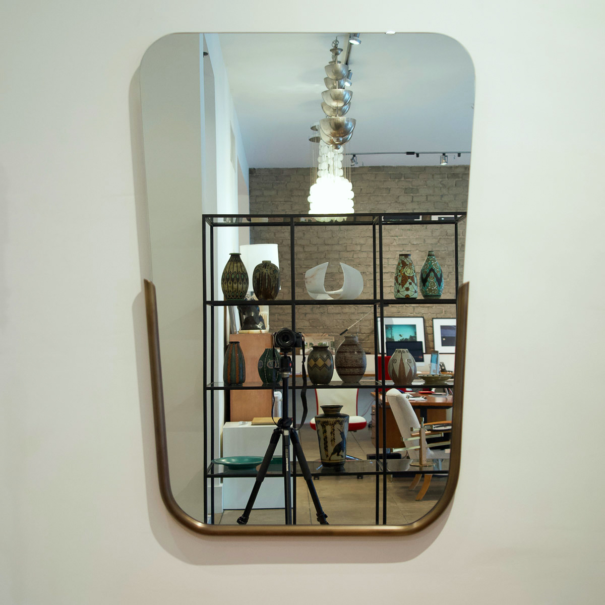 Mirror One by Acre Design1" Solid Brass Stock Rabbeted To Receive The MirrorPrice: 5300.00Dimensions: H 45.5" x W 30.5" top x W 26.5" bottom x D 1.25"Reference #: M-5485
